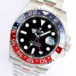 The biggest feature of the EW Factory replica Rolex GMT Master II 126710BLRO Blue Dial watch is the red-blue color matching ceramic ring made of high-tech and conspicuous at a glance.
